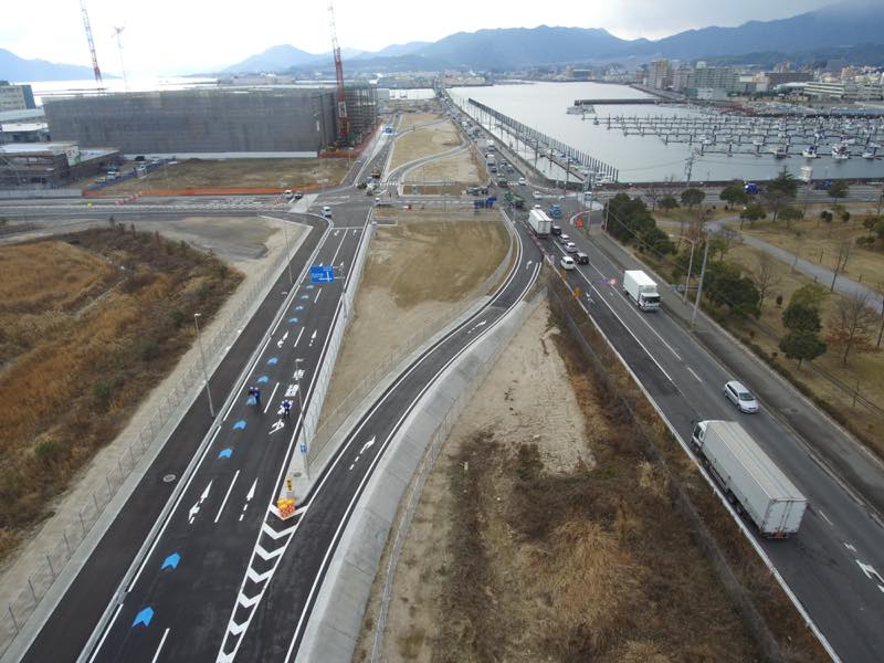 | 工事名称 | 国際拠点港湾 広島港 臨港道路 廿日市草津線 道路舗装(五日市1工区)工事 |